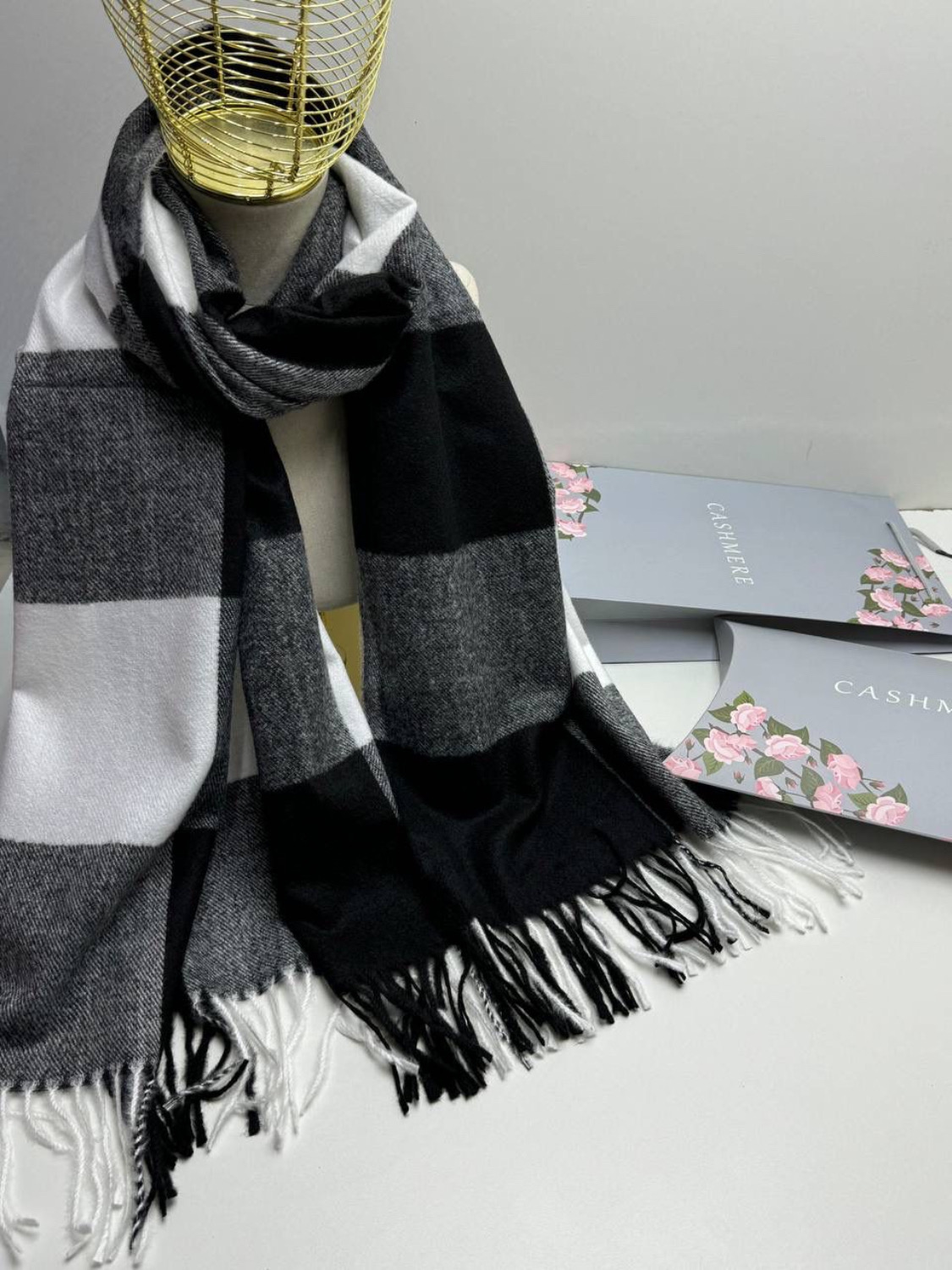 Палантин женский в крупную клетку четный с белым 04112503