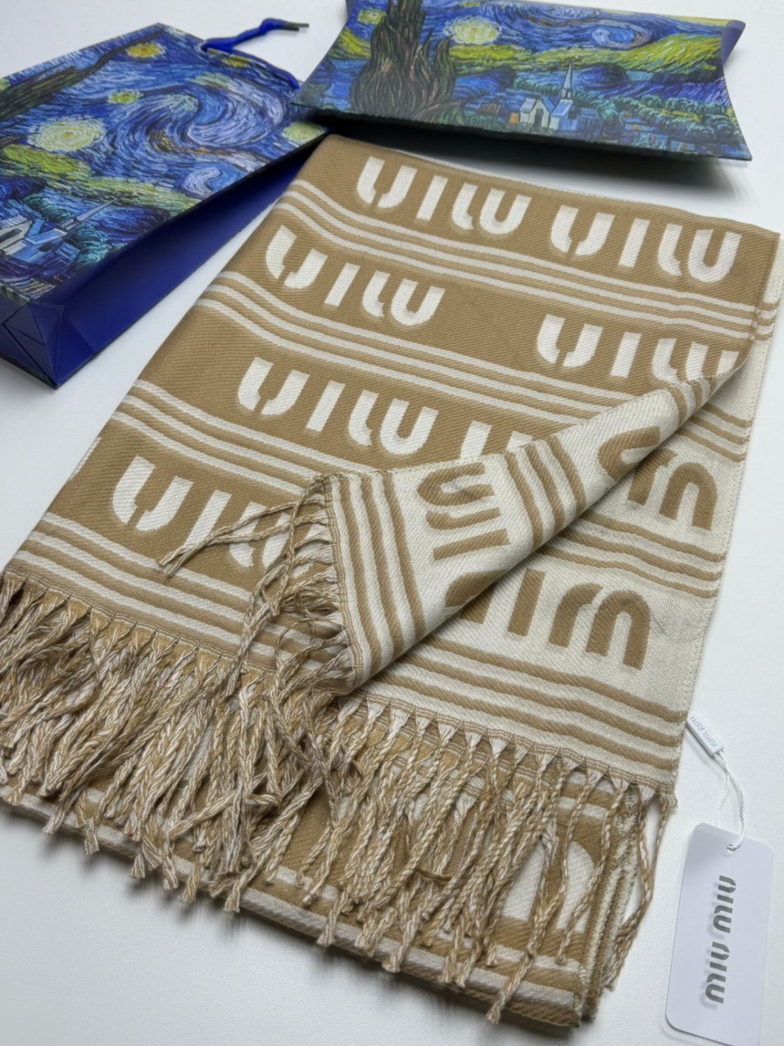 БрендMIU MIU Размер70*180 см Состав65% кашемир 35% шёлк Упаковкаполиэтиленовый пакет