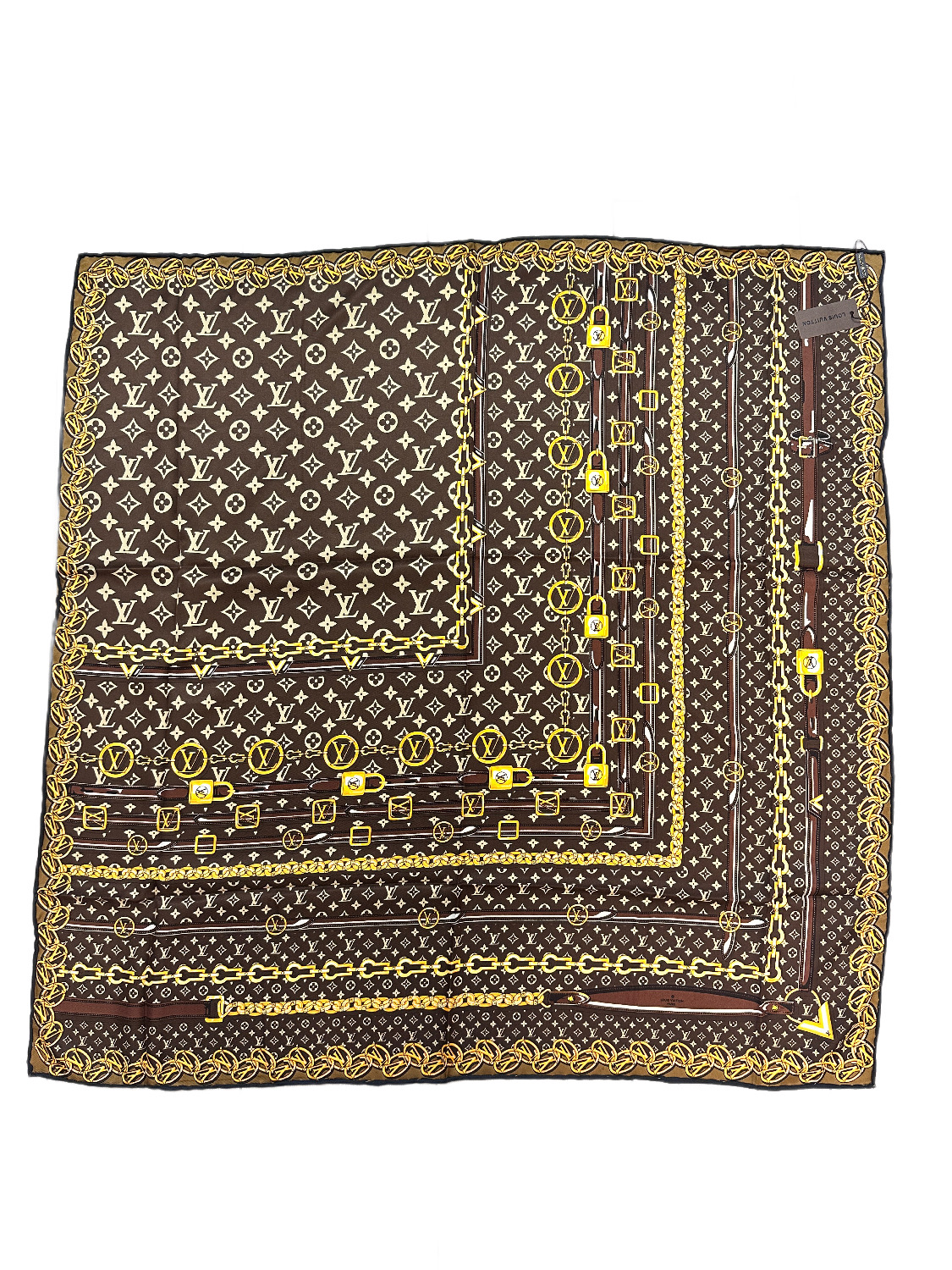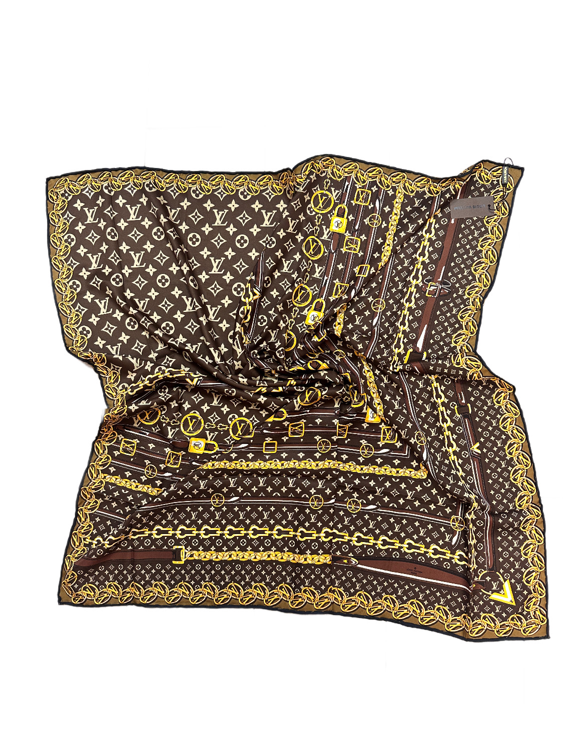 Платок брендовый шёлковый коричневый 050806