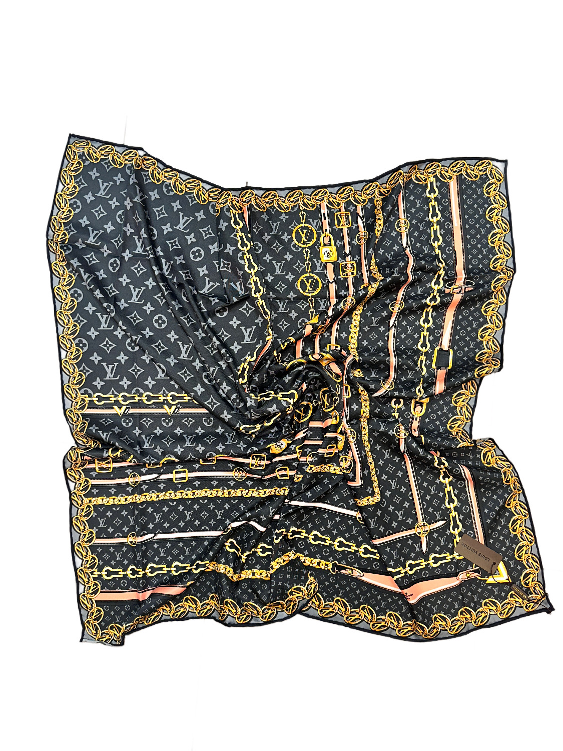 Платок брендовый шёлковый темно серый 050807 выполнен из 100 % плотного шелка, смотрится загадочно и изысканно. В нем вы будете выглядеть по-царски роскошно. Ручная подгиба края.