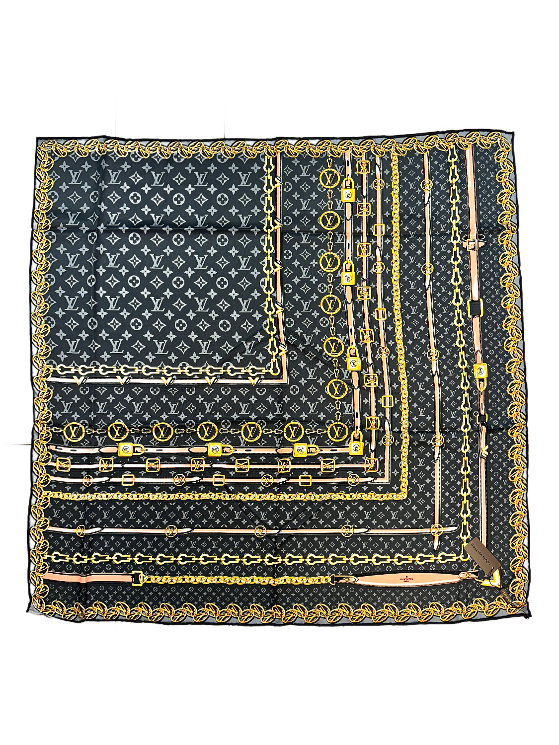 Платок брендовый шёлковый темно серый 050807