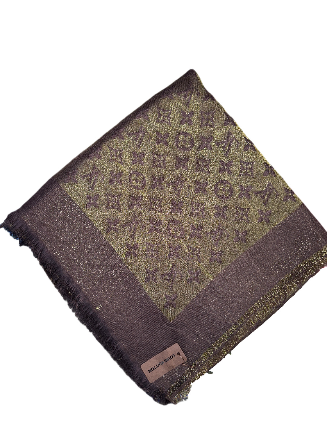 Платок брендовый шерстяной коричневый с золотом 06112500