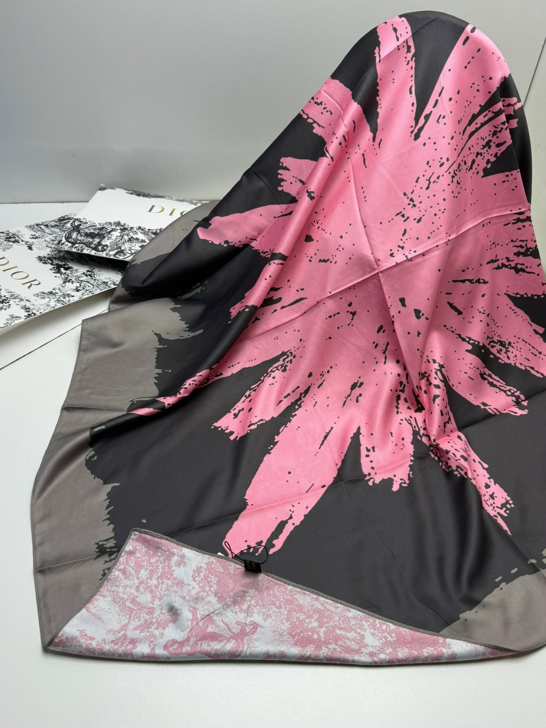 Женский платок шёлковый Dior розовый с серым 30102500. Квадратный, двустороннмй платок из шелка с ручной подгибкой. Идеальная завершающая деталь образа, которая уместна всегда, в любое время дня и вечера.